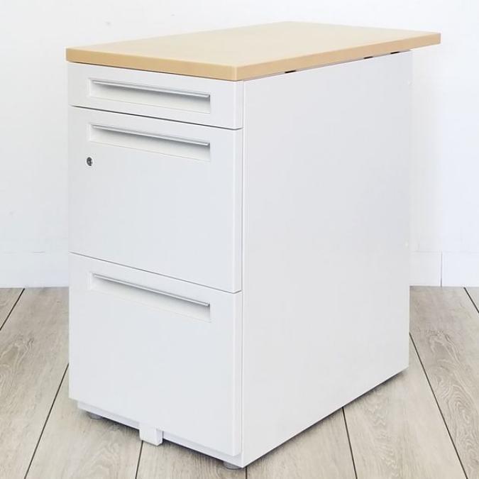 【2台入荷!!】内田洋行の3段脇机!中古 脇机 袖 オフィス 事務 スカエナ ホワイト ナチュラル サイドデスク サブデスク- 大阪梅田本店