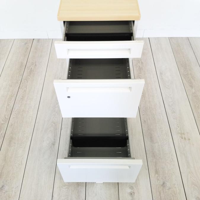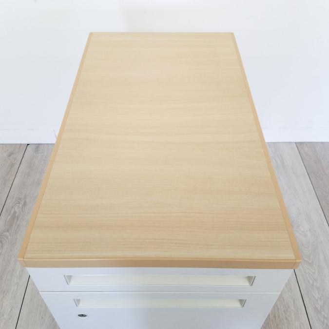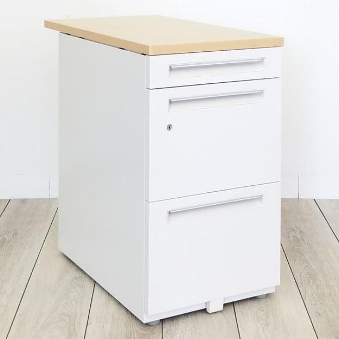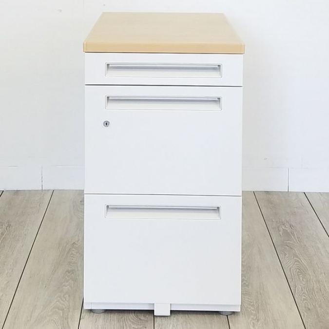 【在庫入れ替えSALE】3段脇机 内田洋行 スカエナ 本体:ホワイト 天板:ナチュラル 鍵付き〈岐阜・愛知・三重・静岡・福井〉