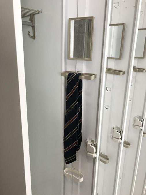 - 完備鏡、ネクタイ掛け、傘立て、網棚、フック等が全て完備されている。