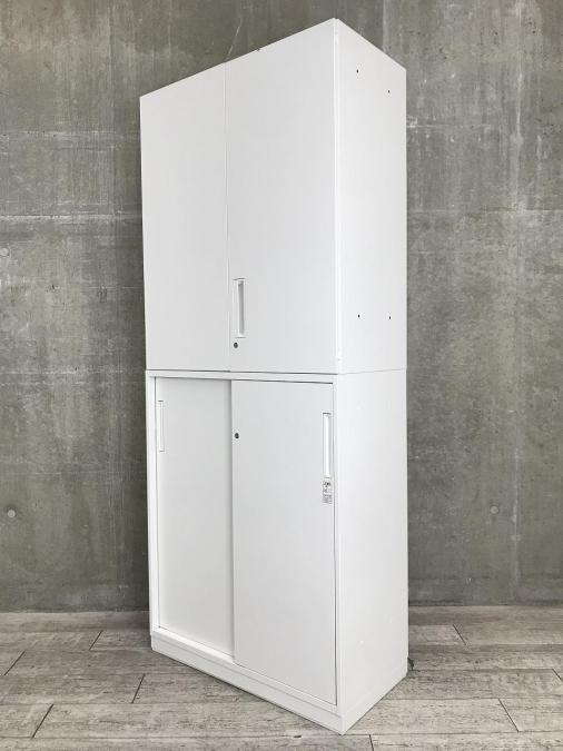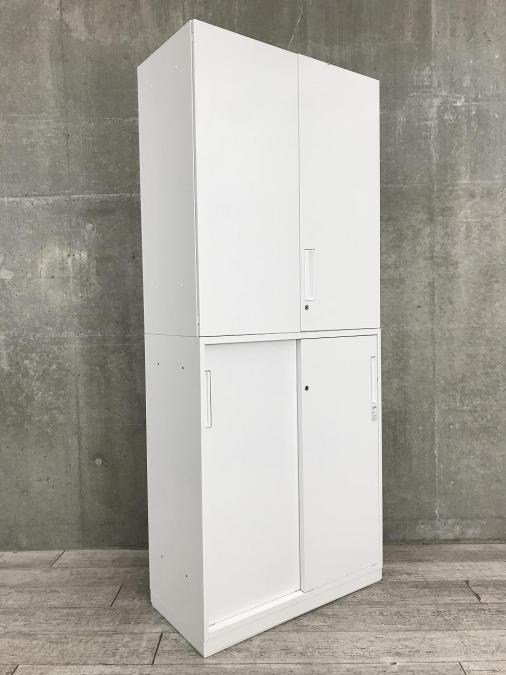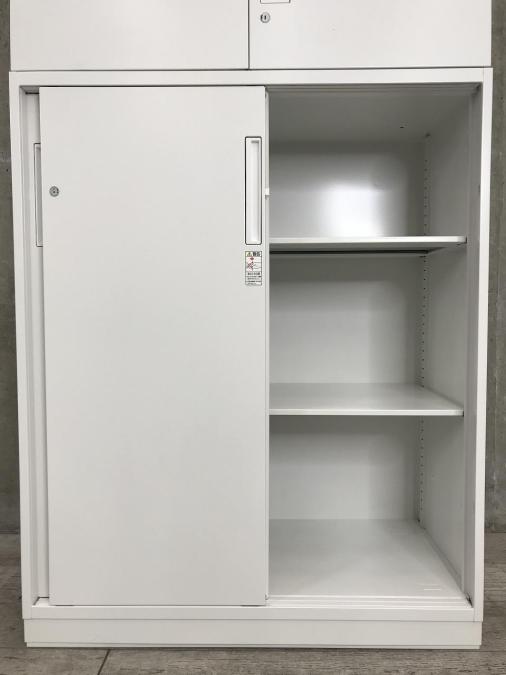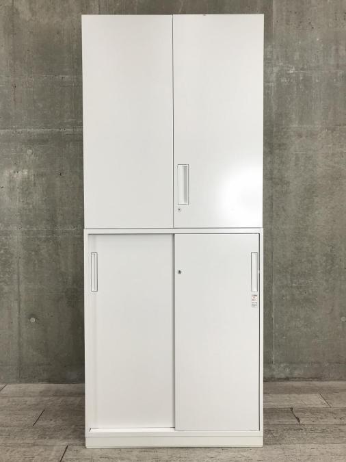 【豊富な収納スペース!書類をスッキリ整理!】■コクヨ エディアシリーズ 上下書庫セット(上:両開き + 下:引戸) ホワイト- 川崎店