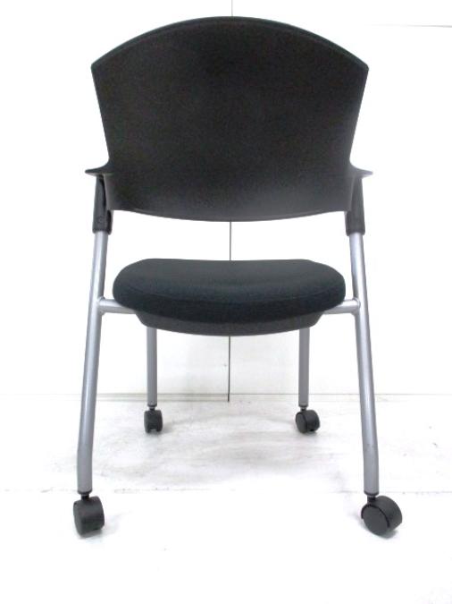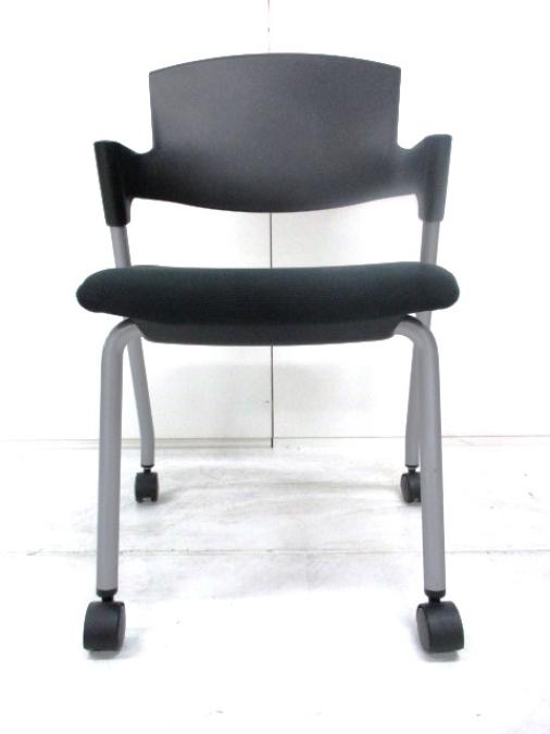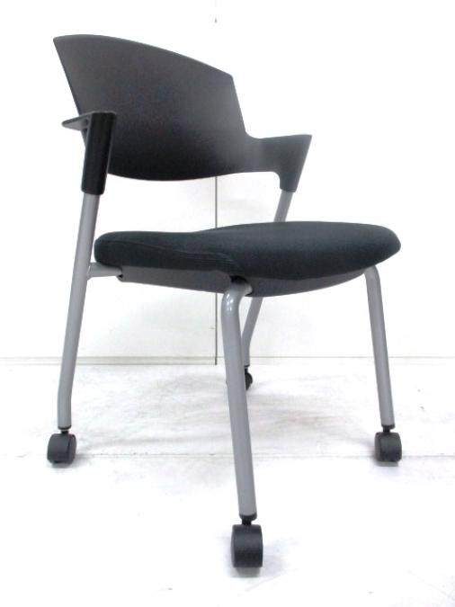 【シンプルスマートなスタッキングチェア!分厚いクッションで長時間でも快適な座り心地!】■スタッキングチェア 肘付ミーティングチェア ■固定肘 ■キャスター付 ■ブラック ■背面樹脂/コクヨ(KOKUYO/プロッティ