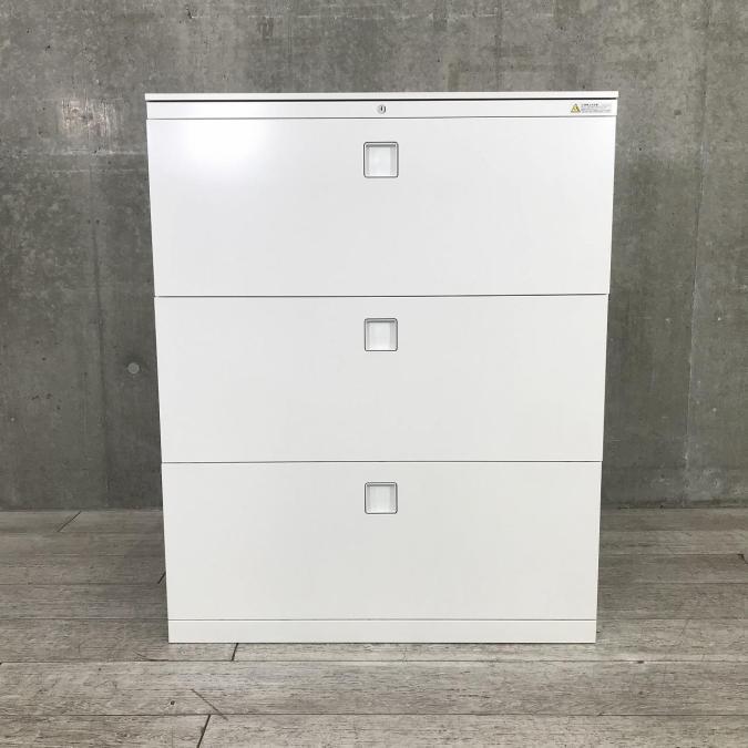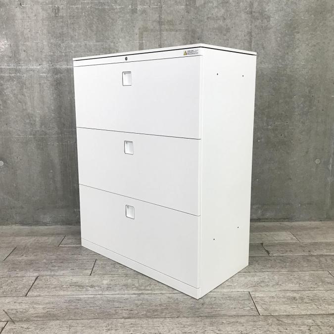 【大容量の三段キャビネット!】■オカムラ(okamura)製 レクトライン(Rectline) 3段ラテラル ■天板付き ■ホワイト- 池袋店
