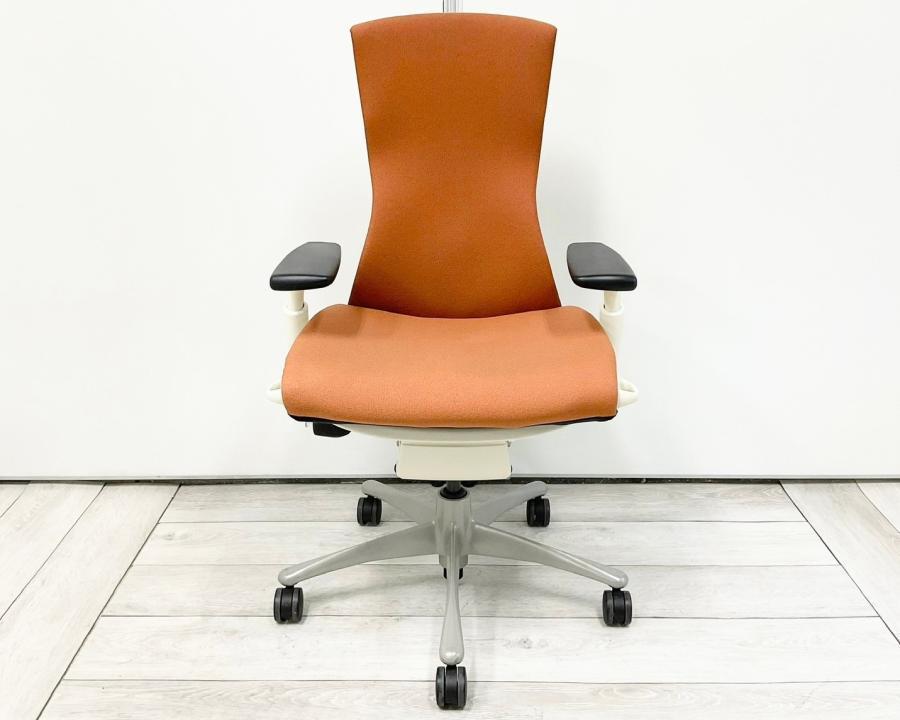 ■ハーマンミラー(Herman Miller)製 エンボディチェア(Embody)ハイバック ■可動肘付き ■色:オレンジ【新品定価25万以上!自然な着座姿勢、健康な動きのためのサポートを考え抜いた至高のチェア】- 在庫数