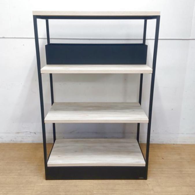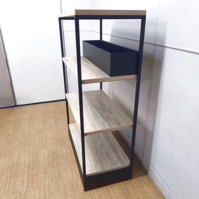 オカムラ ライブスシェルフ おしゃれなオープン型ラック ブラック×木目 オフィスカフェ- 名古屋千種店