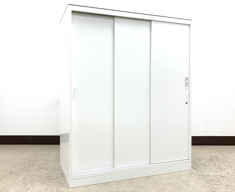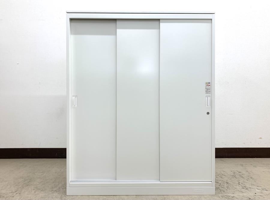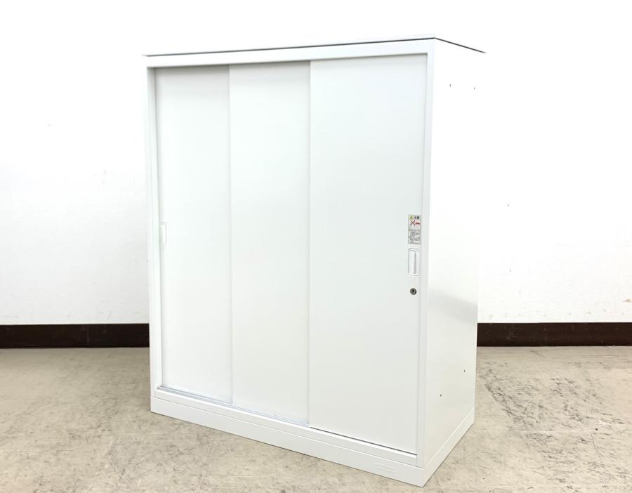 オカムラ製 人気レクトラインシリーズ ホワイト シリンダー W800xD450XH1050 3枚引戸 ※ベースなし 3枚引き違い書庫!!