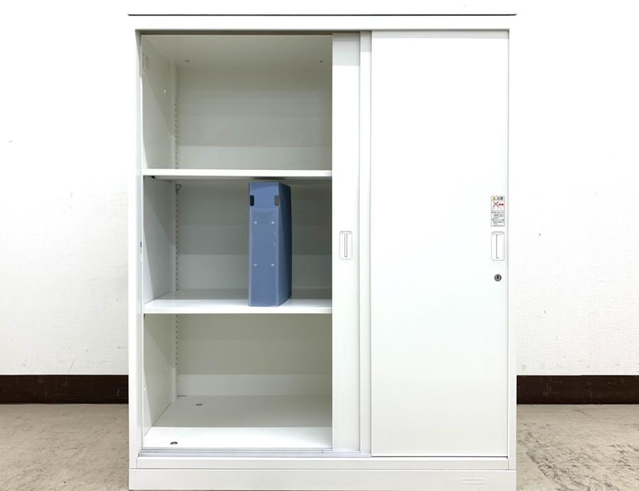 2枚引き戸書庫 オカムラ レクトライン 鍵付き シリンダー錠 ホワイト 天板無し スライド式の扉のため導線を邪魔しません