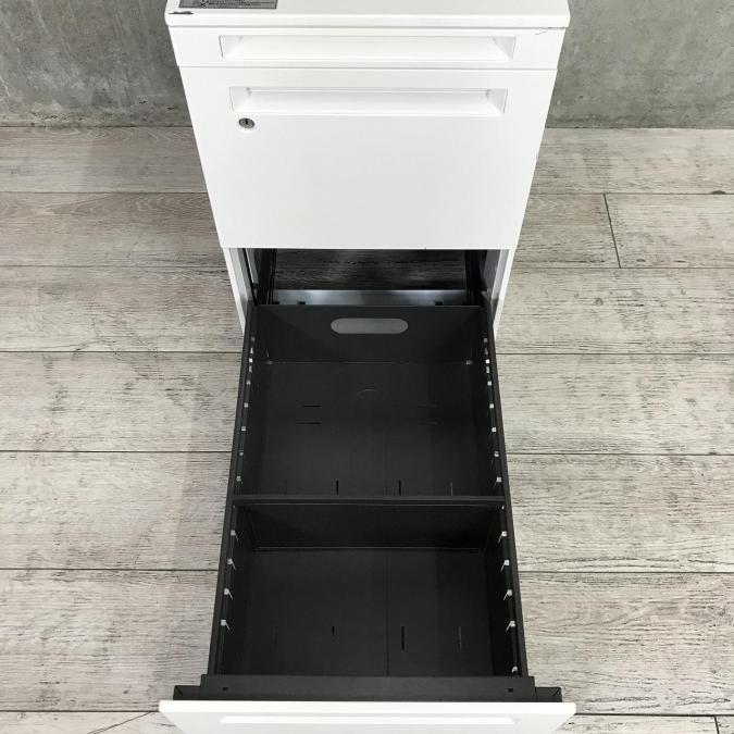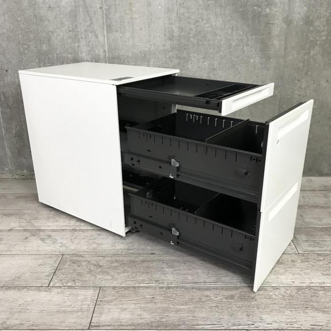 【フリーアドレスの必須品!収納とワークスペースの拡張にオススメ!】■オカムラ(okamura)製 アドバンス(ADVANCE)シリーズ 3段ワゴン フリアド用 H650㎜ ■シリンダー錠 ■ホワイト