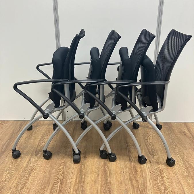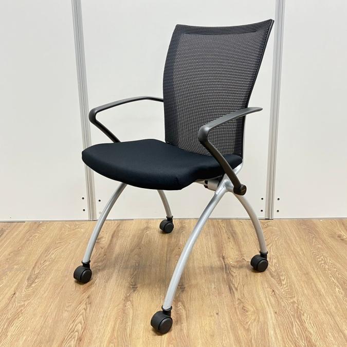 【4脚セット】オフィス会議用に! 時代にあったシャープなデザイン ネスティングチェア!!- 京都東寺店