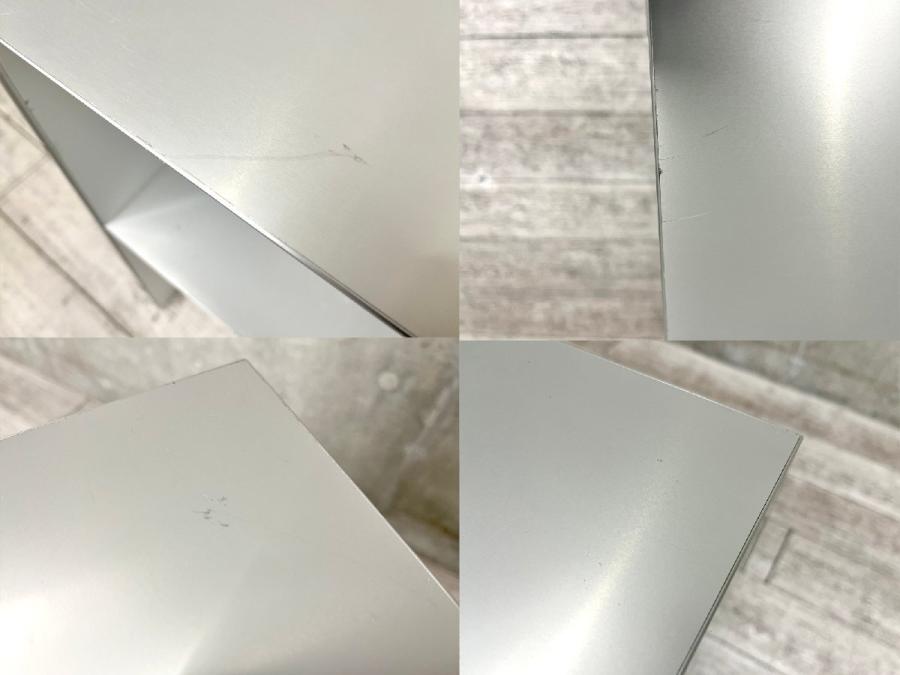 - 目立つ箇所複数あり深い傷・凹みが商品全体にある。(例、天板、幕板、棚板、サイド部分、脚部等にある。)