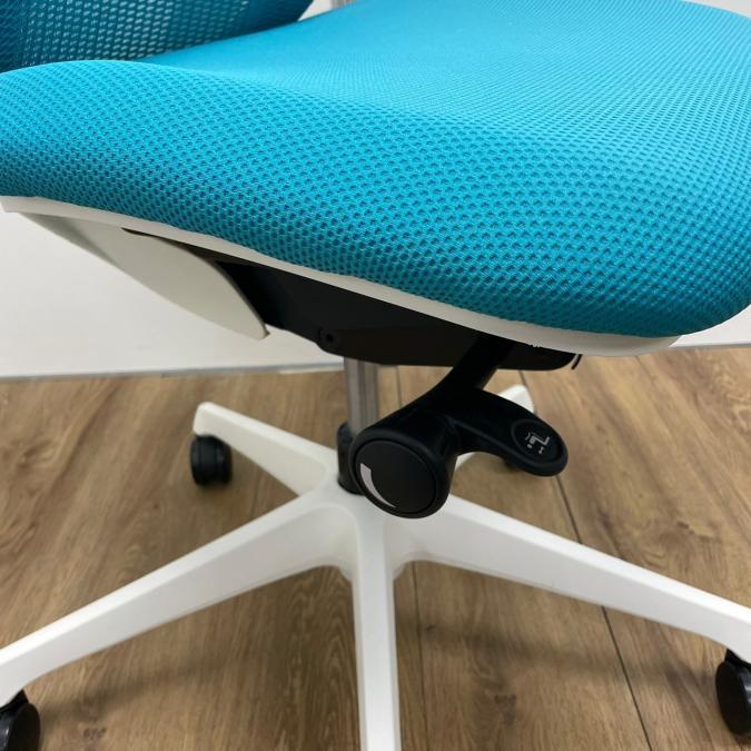 背のカーブを変えられる!前傾機能付きの新感覚のオフィスシーティング!包み込まれるような快適な座り心地! ■オカムラ/シルフィーチェア/ブルーグリーン コートハンガー付