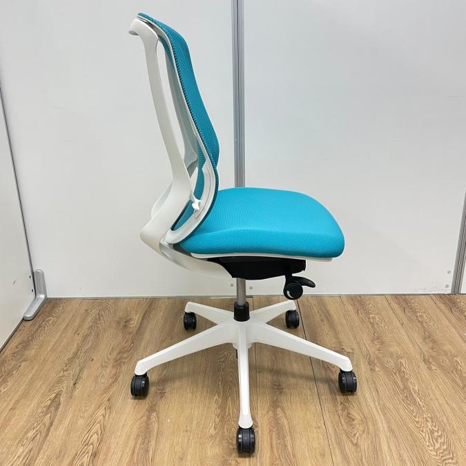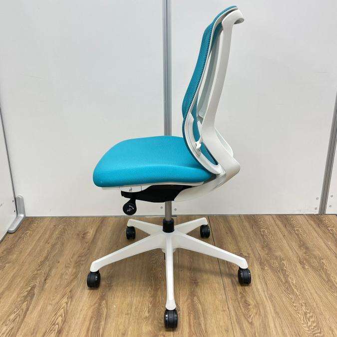 三次元曲面が身体にフィット!前傾チルト機能付き大人気メッシュチェア! ■オカムラ/シルフィーチェア(Sylphy)/ブルーグリーン×ホワイトシェル 肘付ハイバック ■背面メッシュ ■肘無し