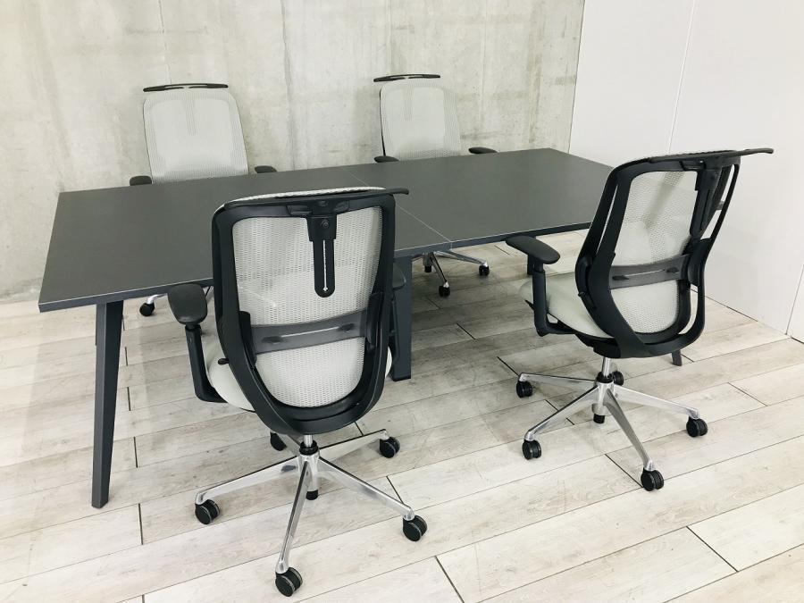 【横幅2400㎜サイズ】ブラックの大型テーブルが入荷!シックで引き締まった印象のオフィスに ■4~6名様でのご利用にオススメ!幅2400×1200㎜ ■応接用・会議室や休憩スペースにも- 千葉店