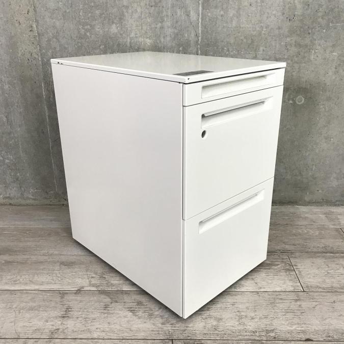 【フリアドデスクや平机の収納力アップに最適!】■オカムラ(okamura)製 アドバンス(ADVANCE)シリーズ 3段ワゴン フリアド用 W390×D575×H650㎜ ■シリンダー錠 ■ホワイト ※日焼け有【IB】