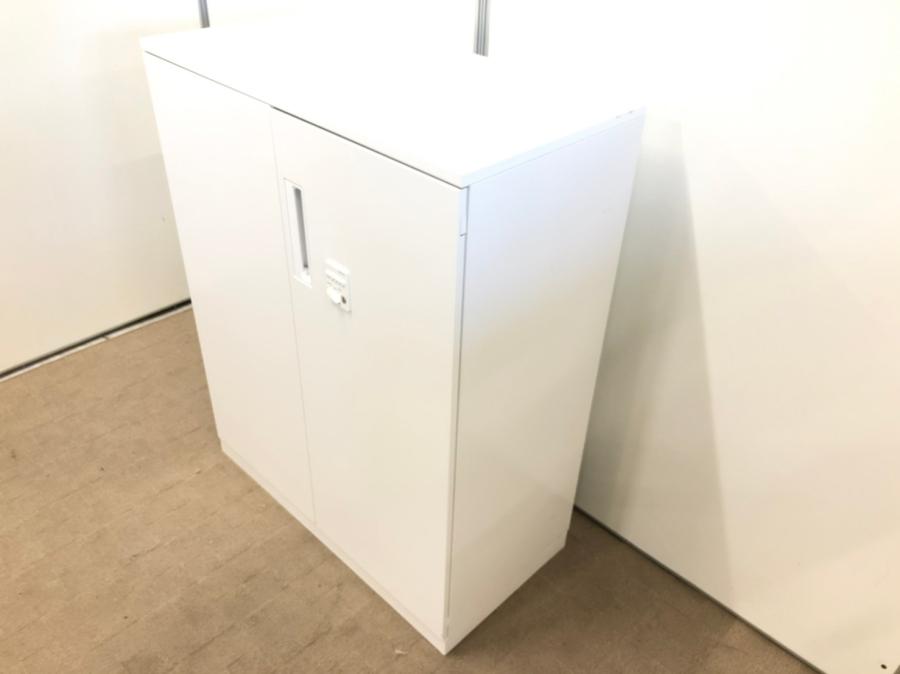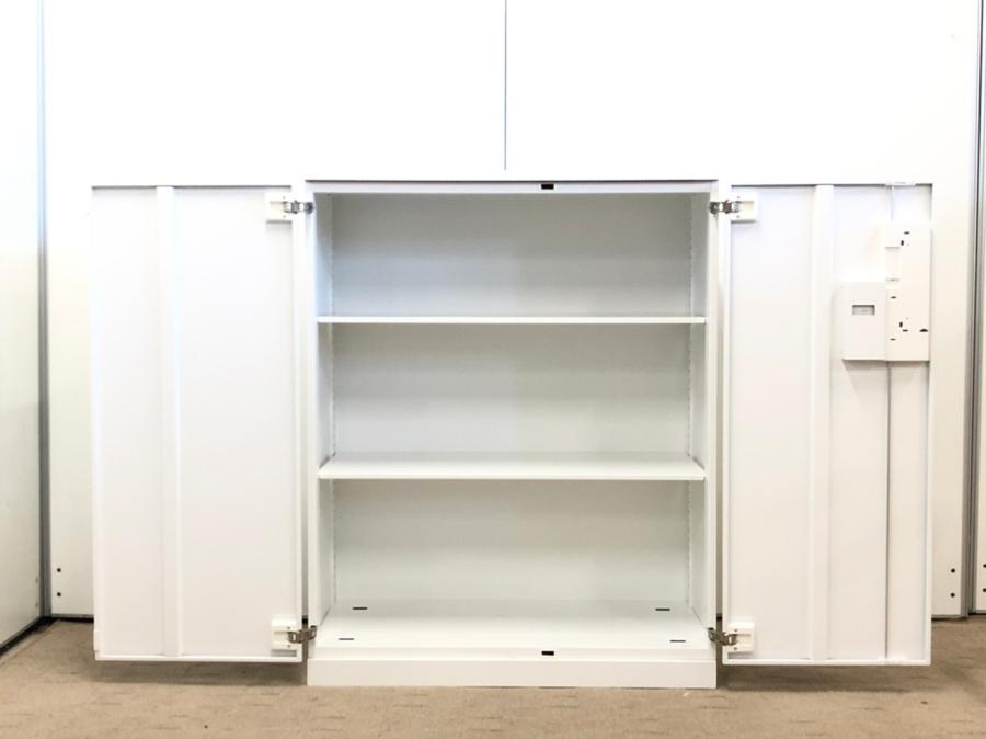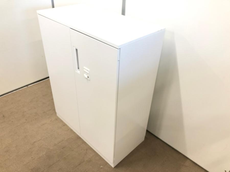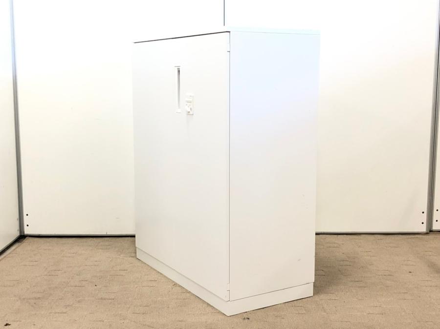 【収納物がひとめで分かる両開き戸タイプ!】■コクヨ(KOKUYO)製 エディア(EDIA)シリーズ 両開き書庫 ローキャビネット H1130㎜ ■天板・ベース付 ■ホワイト ■シリンダー錠【IB】