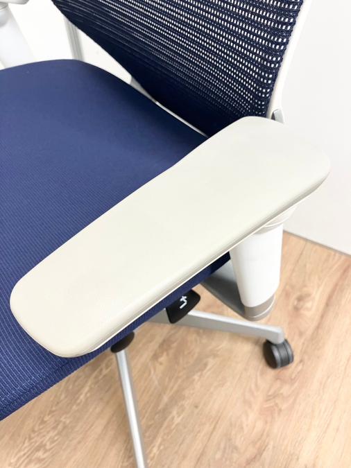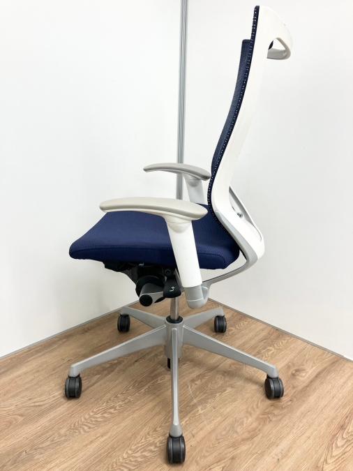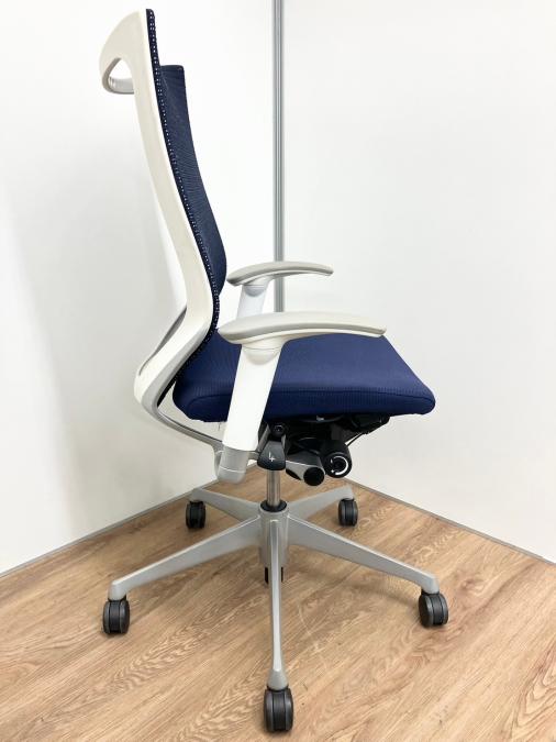 【新品ヘッドレスト付き】オカムラ/バロン/ブルー×ホワイト/可動肘/座面クッション【AD】
