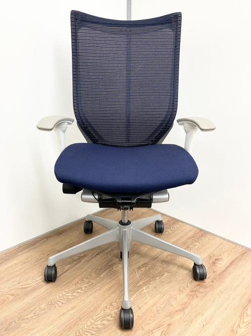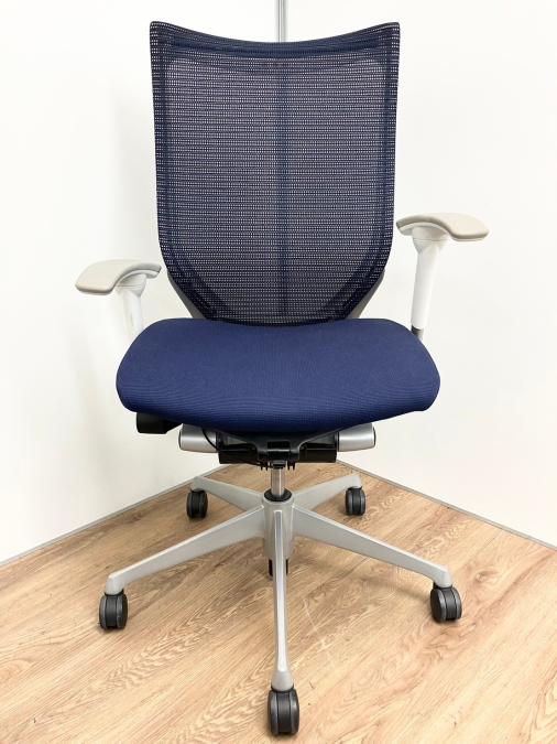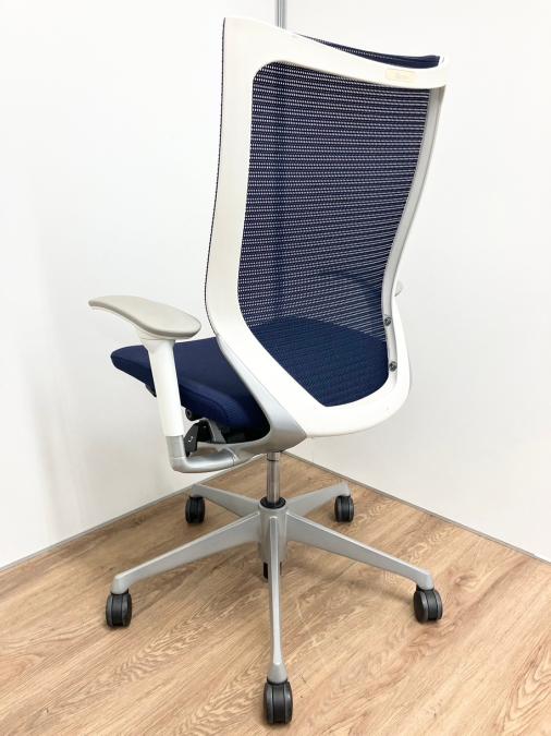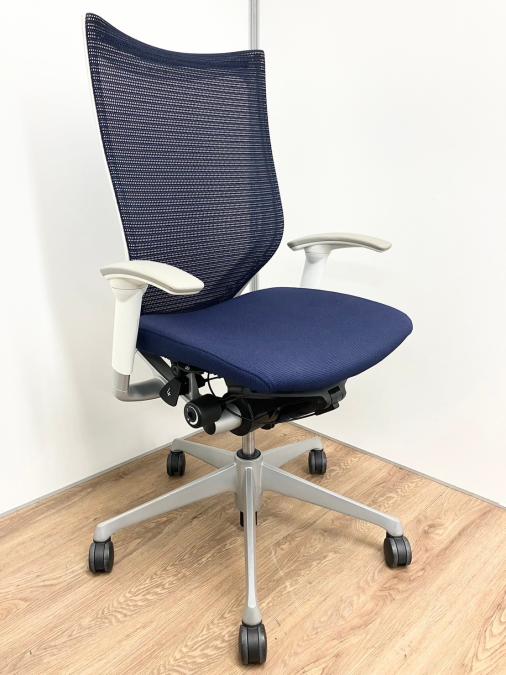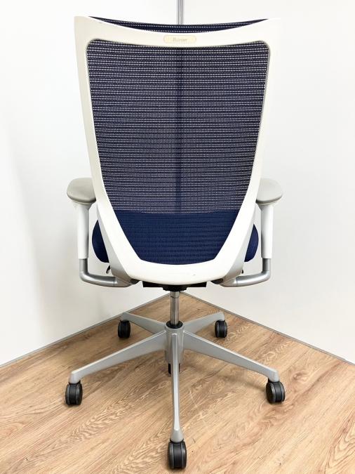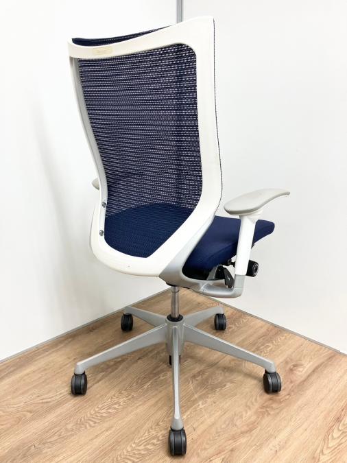 【オフィスの執務室、会議室におすすめ!】■オカムラ(okamura)製 バロン(Baron)チェア 肘付き ハイバック 背面メッシュ ■可動肘 ■ダークブルー × ホワイトシェル【硬めの座面が大人気!国産メッシュチェアの代表格!】【状態良好品!】