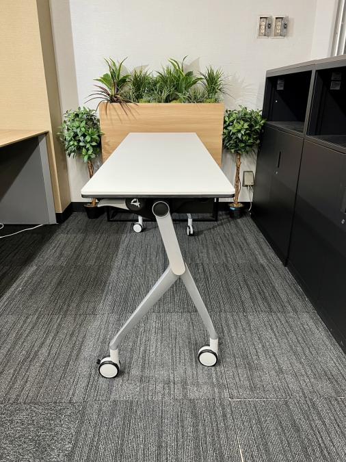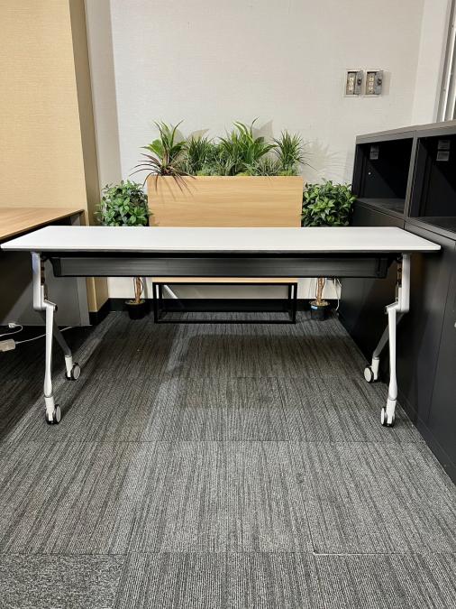 高級感あり!2人掛け可能なキャスター付・天板跳ね上げ型ミーティングテーブル! ■オカムラ/インターアクト(Interact NT)/ホワイト W1500 D450 フラップテーブル- 福岡南店