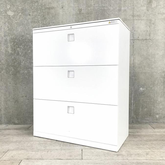☆人気のセパレートロックタイプ!【個人用ロッカーとしてもオススメ!】■オカムラ レクトラインシリーズ 3段ラテラル書庫 ホワイト天板付 各段施錠タイプ ■Okamura Rectline】