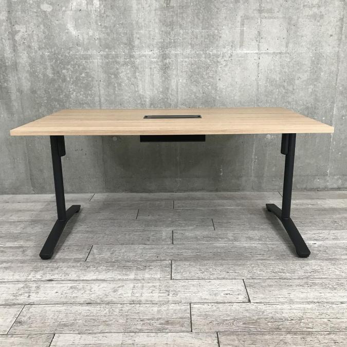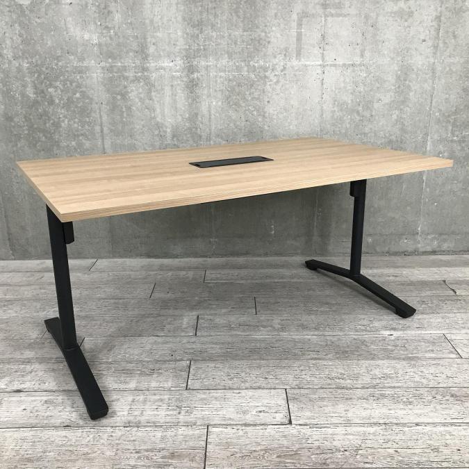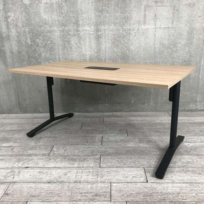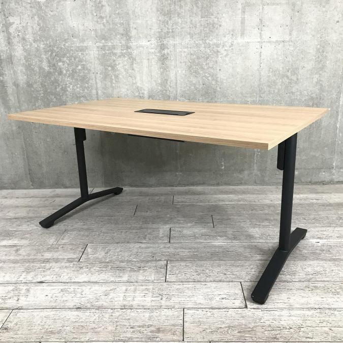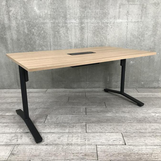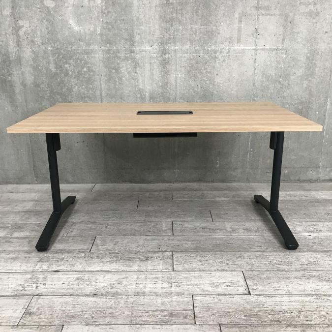 お洒落なカフェ調に合う木目テーブル!キャスター付きでレイアウト変更も気軽に!キャスターロック・配線ボックス付 ■コクヨ/ビエナ/天板:ラスティックミディアム/脚:ブラック- 立川・八王子店