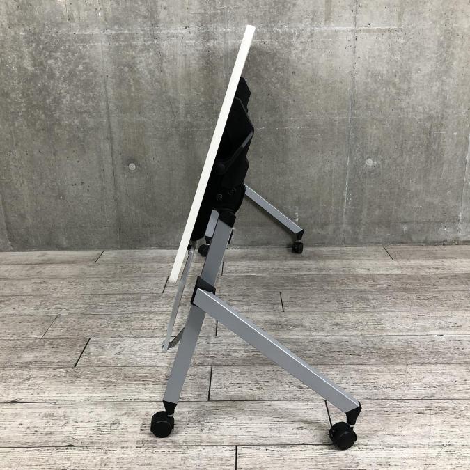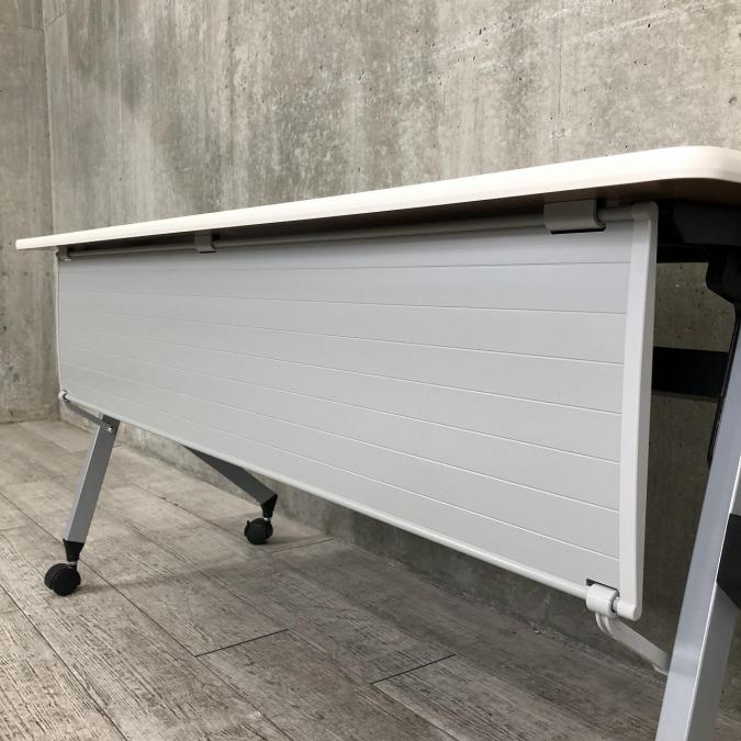 2名様で使えるホワイトのスタックテーブル入荷!キャスター付きで移動も楽々!■ITOKI(イトーキ) HXシリーズ サイドスタックテーブル 幅1500×奥行600 幕板付き ホワイト【天板跳ね上げ式でコンパクトに収納】- 神戸・三宮店