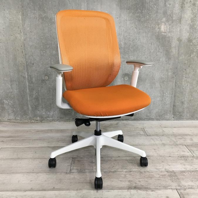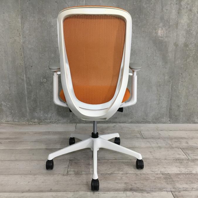 【在庫入替セール品!】【背のカーブを変えられる新感覚のオフィスシーティング!】■オカムラ シルフィーチェア 可動肘付 オレンジ ハンガー付 ホワイトフレーム ■新感覚のオフィスシーティング!【Okamrua Sylphy】