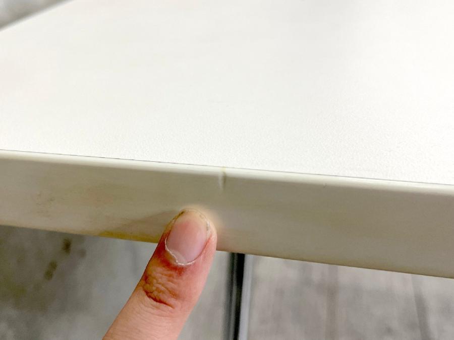 - あり黄ばみ・変色が広い範囲にうっすらある、または濃い黄ばみ・変色が一部ある。(例、天板、幕板、棚板、サイド部分、脚部等にある。)