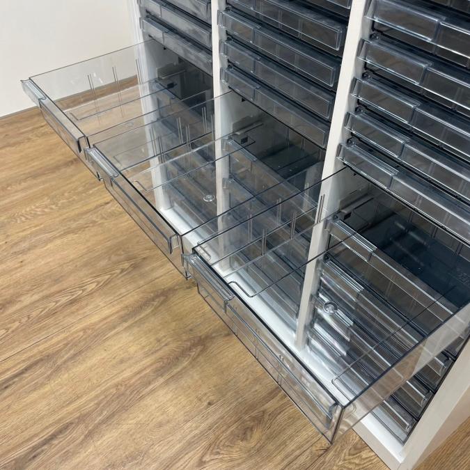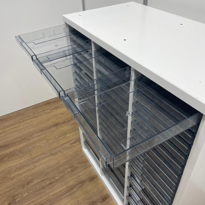 【現品限り!】オカムラ製 レクトラインシリーズ ホワイトカラー W900サイズ 3列 浅型深型混在 クリスタルトレーキャビネット!!- 京都東寺店