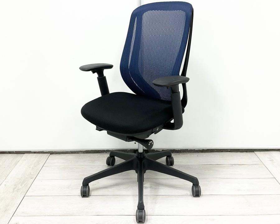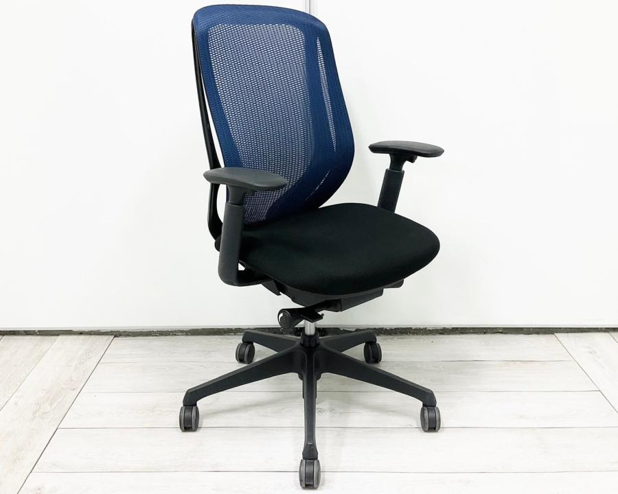 【新品ヘッドレスト交換済み】オカムラ/シルフィー/ブルー/可動肘