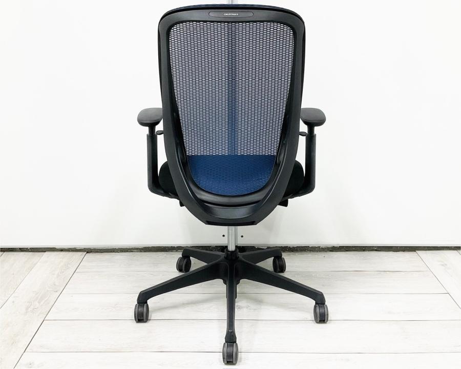 【前傾機能チェアの代名詞!背のカーブを変えられる新感覚のオフィスシーティング!】■オカムラ(okamura)製 シルフィー(Sylphy)チェア 肘付き ハイバック 背面メッシュ ■可動肘・ハンガー付 ■ブルー×ブラックシェル【IB】