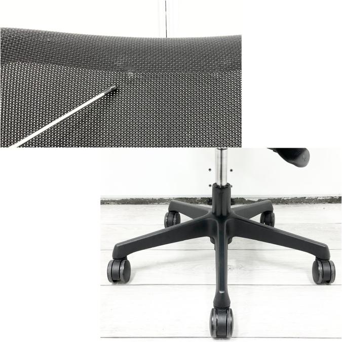 - 目立つ箇所あり傷・破れ・ほつれ・へたり・しわが多数または深い傷・破れ・ほつれ・へたり・しわが一部ある。※座面・背もたれ、シェル、脚部等にある。