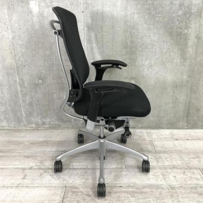 【世界で認められた革新的タスクチェア!人間工学に基づいた快適な座り心地を実現!】■オカムラ(okamura)製 コンテッサ(Contessa)チェア ハイバック 肘付き 背面メッシュ ■可動肘・ランバーサポート付 ■ブラック ※肘スレ有