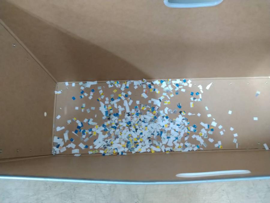 縦切り&横切りによる小さな細断面積で、機密保持を徹底。