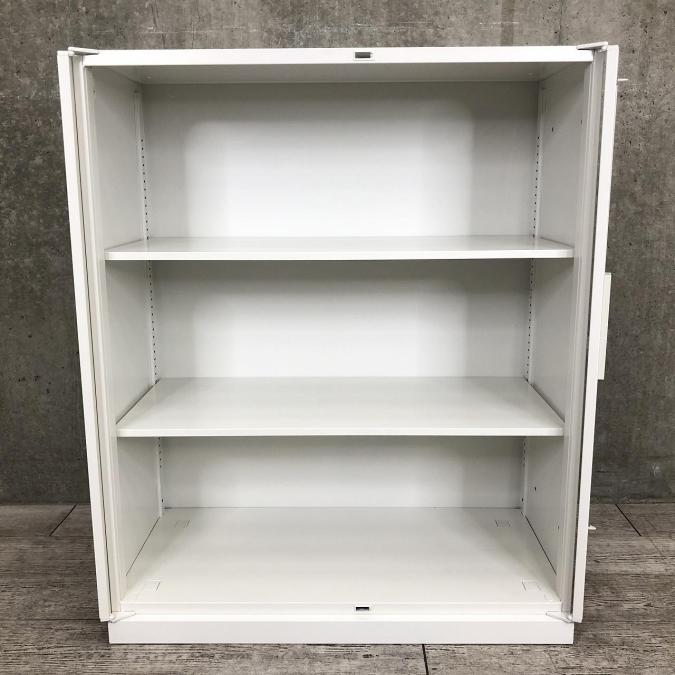 【書類の収納スペースを増やしたい方に!】■ナイキ(NAIKI)両開き書庫 ■ホワイト ■ベース付き ■シリンダー錠- なんば日本橋店
