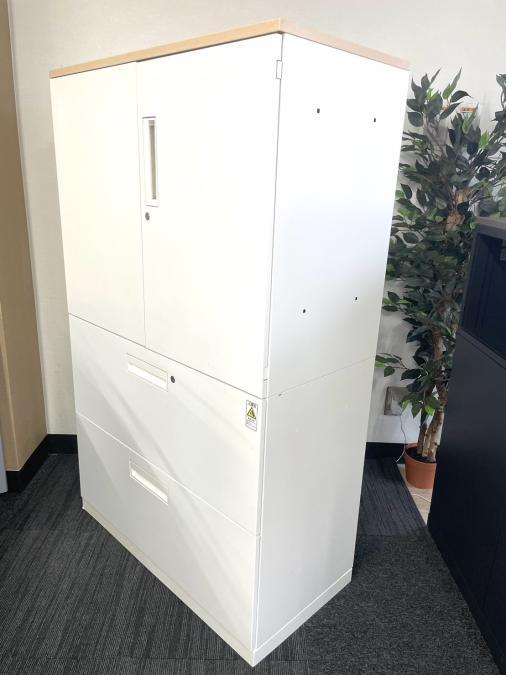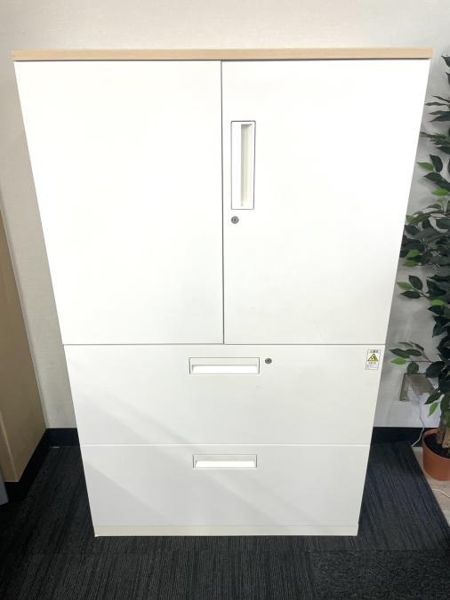 低身長の方でも使いやすい書庫! 引き出しタイプ+観音開きタイプ! コクヨ エディア ホワイト 九州 福岡 オフィス家具 中古 書類 収納- 福岡南店