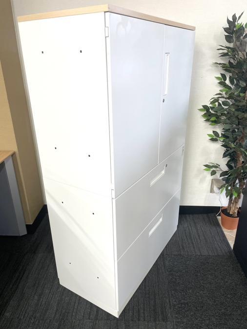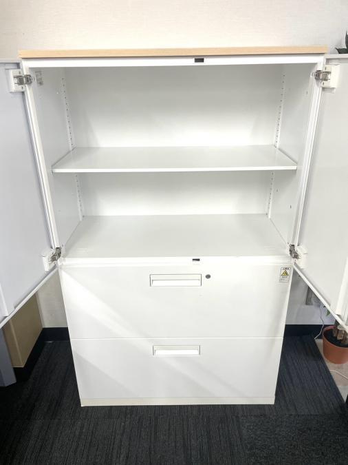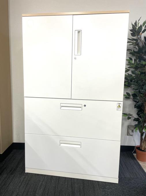 【南】低身長の方でも使いやすい書庫! 引き出しタイプ+観音開きタイプ! コクヨ エディア ホワイト 九州 福岡 オフィス家具 中古 書類 収納- 在庫数