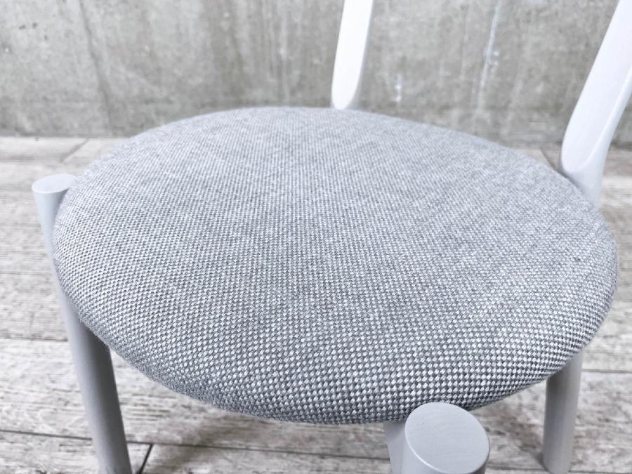 本作品は新進気鋭のデザインスタジオ『BIG-GAME』によるデザインで、非常にシンプルに仕上げられておりますが、背もたれや脚のジョイント部分のディテールには、カリモクならではの高度な加工技術が存分に活かされており、背もたれのフィット感やスタッキングのしやすさを高いレベルで両立しています。半透明着色仕上げにしたことで、ナラ材の力強い木目と素材感を際立たせています。