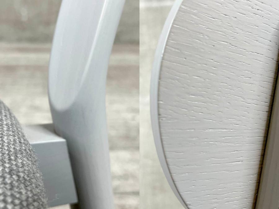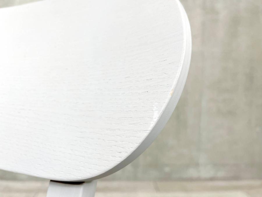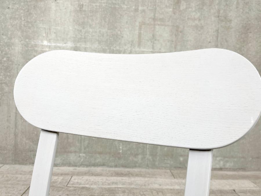 本作品は新進気鋭のデザインスタジオ『BIG-GAME』によるデザインで、非常にシンプルに仕上げられておりますが、背もたれや脚のジョイント部分のディテールには、カリモクならではの高度な加工技術が存分に活かされており、背もたれのフィット感やスタッキングのしやすさを高いレベルで両立しています。半透明着色仕上げにしたことで、ナラ材の力強い木目と素材感を際立たせています。