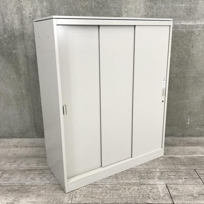 【お問い合わせの多い引違い書庫が入荷!スライド引き戸だから開閉スペースに困りません!】■オカムラ(okamura)製 レクトラインシリーズ 3枚引き戸タイプ 引違い書庫 ■シリンダー錠 ■ニューグレー