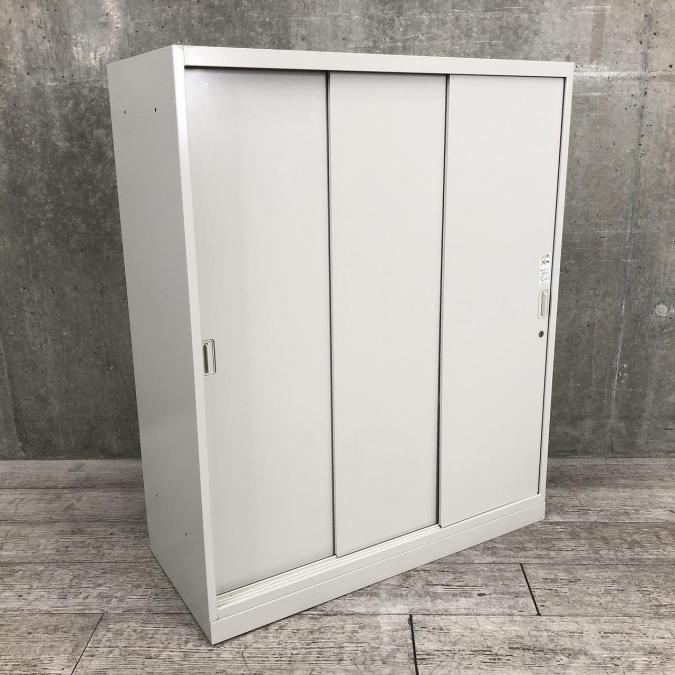 【お問い合わせの多い引違い書庫が入荷!スライド引き戸だから開閉スペースに困りません!】■オカムラ(okamura)製 レクトラインシリーズ 3枚引き戸タイプ 引違い書庫 ■シリンダー錠 ■ニューグレー