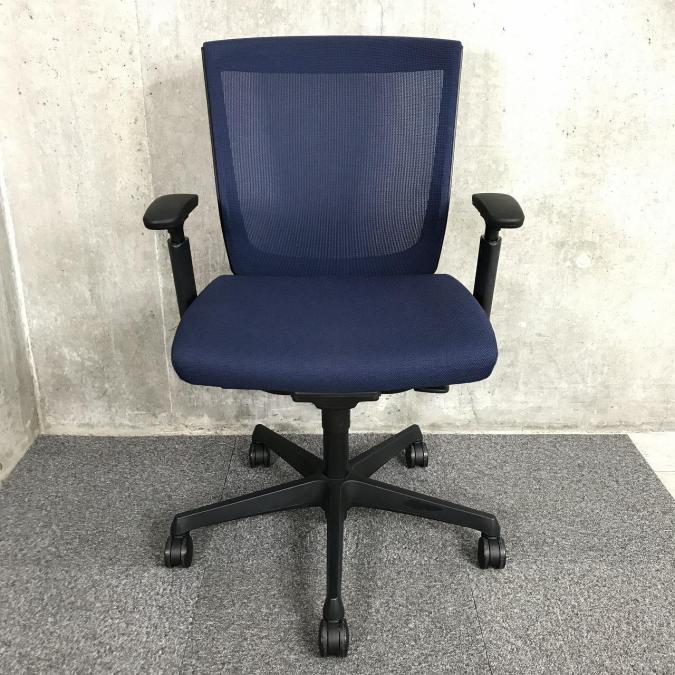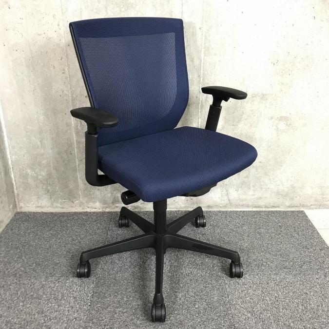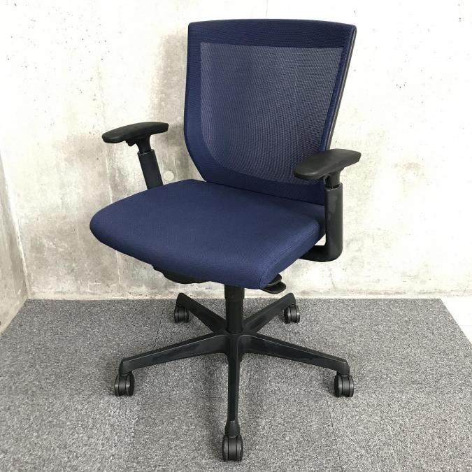 オカムラ製/エスクード(ブルー)/肘付ローバック