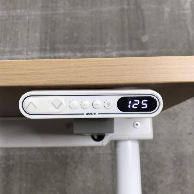 机上面の高さは65~125cmの範囲で調節可能。ボタンひとつで操作できます。