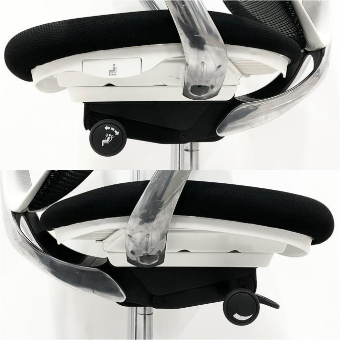 座面右下のレバーをスライドさせる「クイックスライドオペレーション」で、