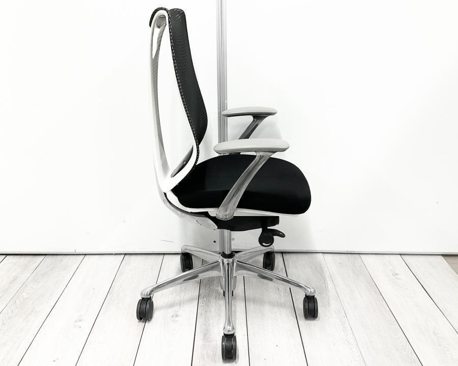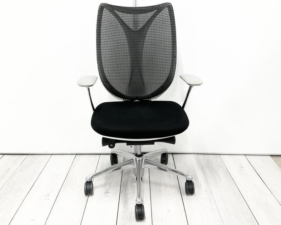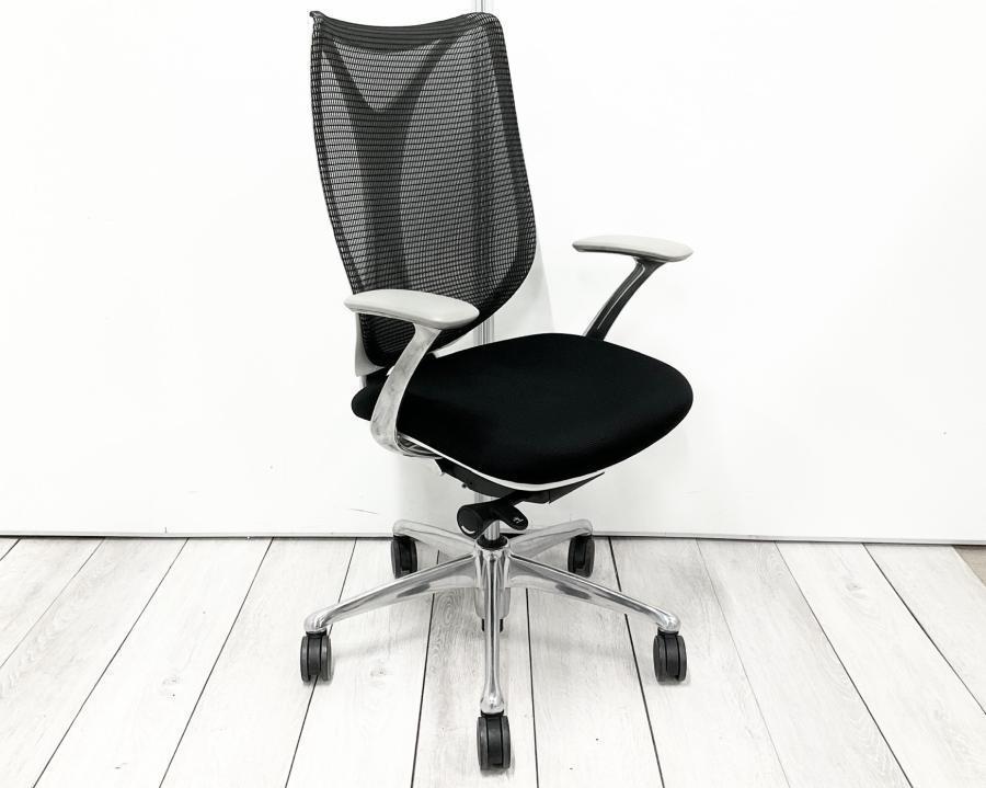 大人気!オカムラ製のメッシュチェアが入荷! 座面・背面が広めでしっかりしており、前傾機能が付いた高級チェアです! ■オカムラ/サブリナ/ブラック デザインアーム付 ホワイトボディ- 立川・八王子店