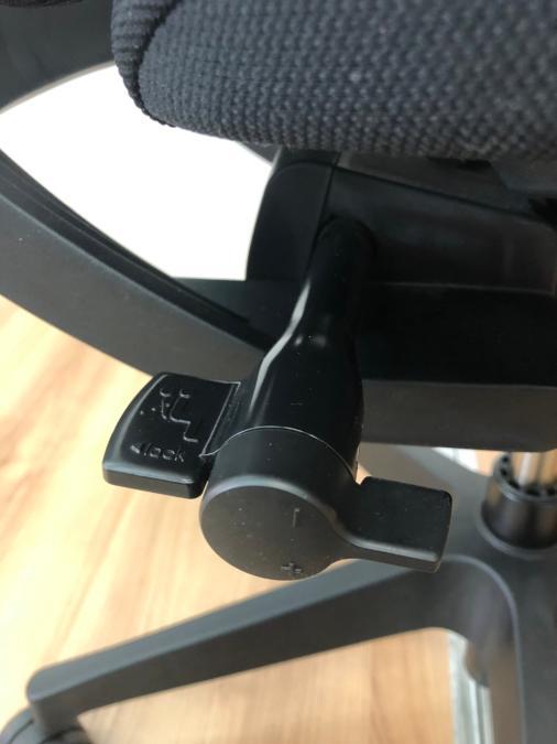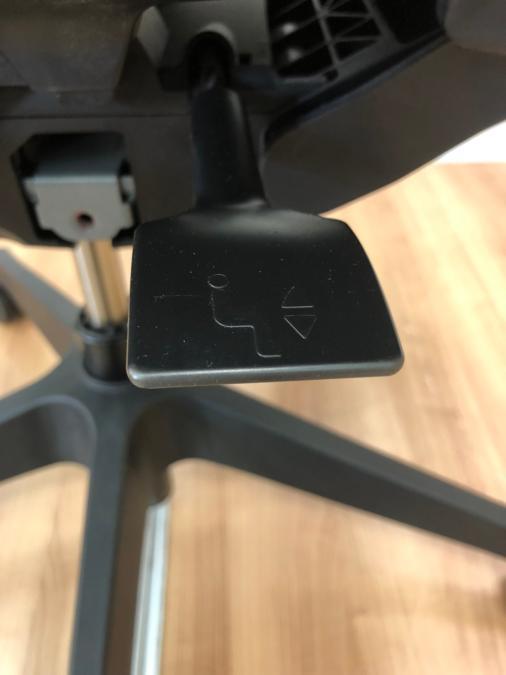 - 座面下のレバー操作により、座面を50mmのストローク(16.7mmピッチ)で好みの位置に調節できます。体格や作業姿勢に合わせたポジション設定が行えます。