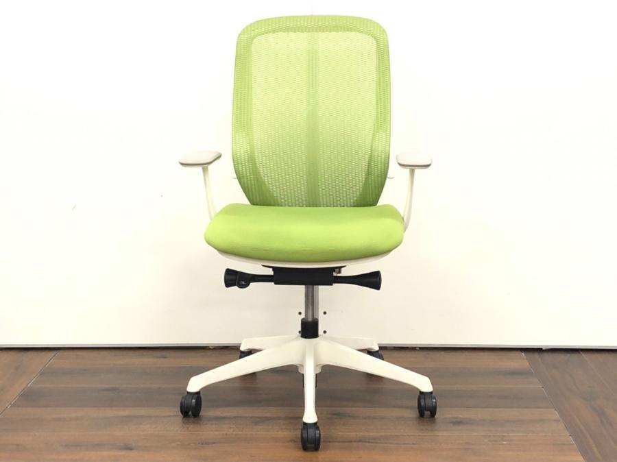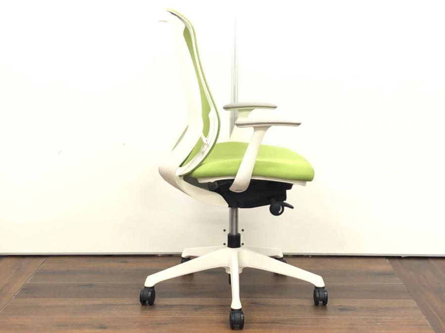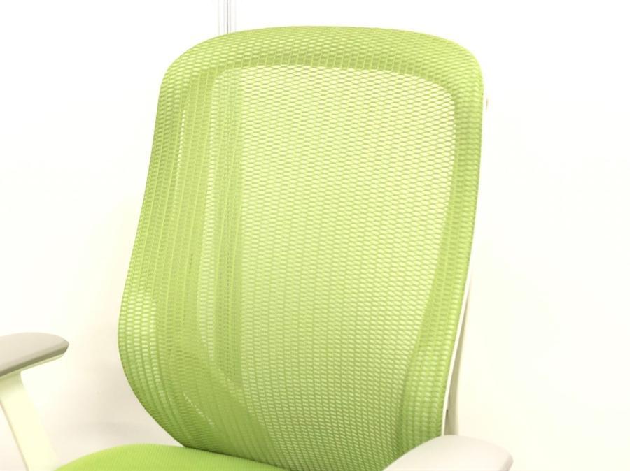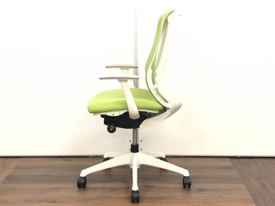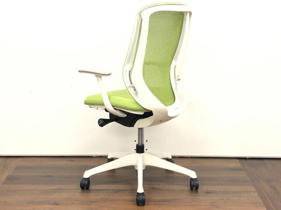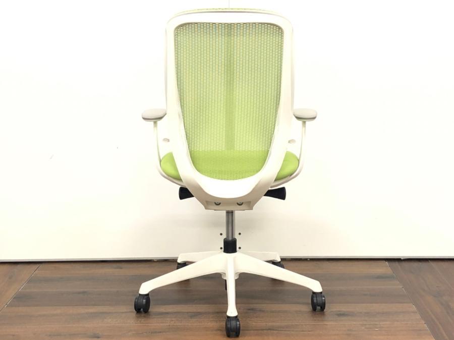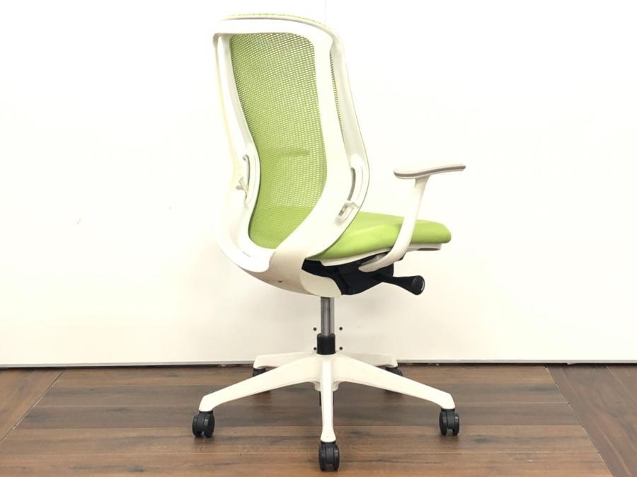 【フレームに日焼けがあるためお安く!】【三次元曲面が身体にフィット!】■オカムラ製 シルフィーチェア デザインアーム付 ライムグリーン ■まるで手を添えて包み込まれるような優しい座り心地!- 川崎店