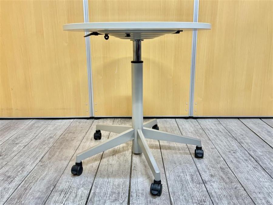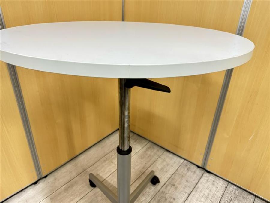 【昇降テーブル】スチールケース製 高さ調整可能な丸テーブルが入荷いたしました! 昇降 丸テーブル ホワイト- 在庫数