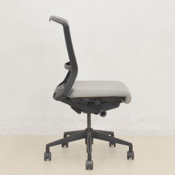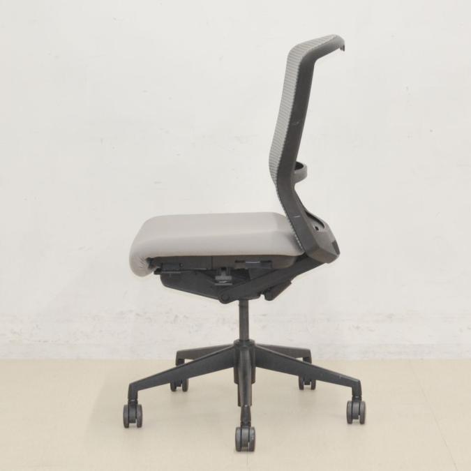 もちろん見た目だけでなく、オフィスでの使いやすさも考えられています。例えば、普通のチェアでは離着席時に背もたれを持つので、背もたれの上部が少しずつ汚れてきます。しかし、エルフィでは、背もたれのフレームに取っ手がついており、それを押し引きできるので、クッションやメッシュを汚すことなく綺麗な状態で長くお使いいただくことができます!