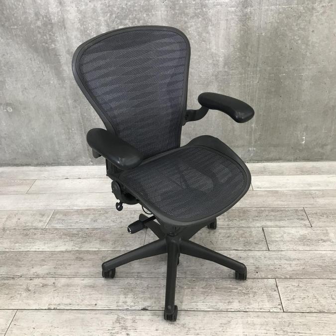 【★状態イマイチのためお安く!】■ハーマンミラー製 アーロンチェア Bサイズ 固定肘 ※キズあり・ランバーサポート無・昇降ガス圧弱めのためお安く!【訳あり特価品】