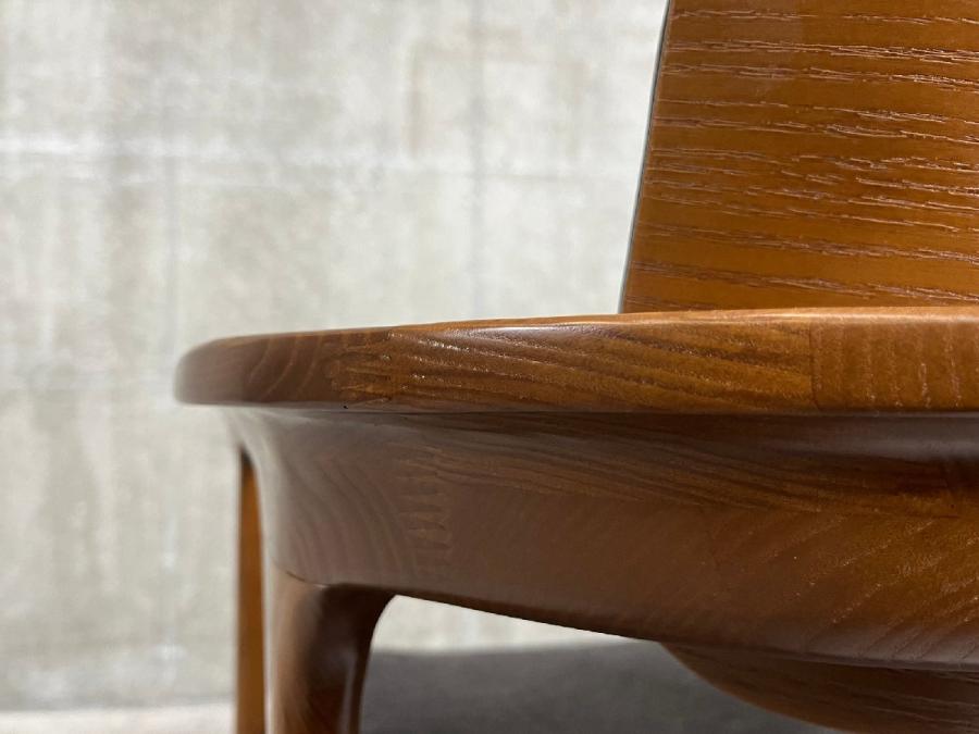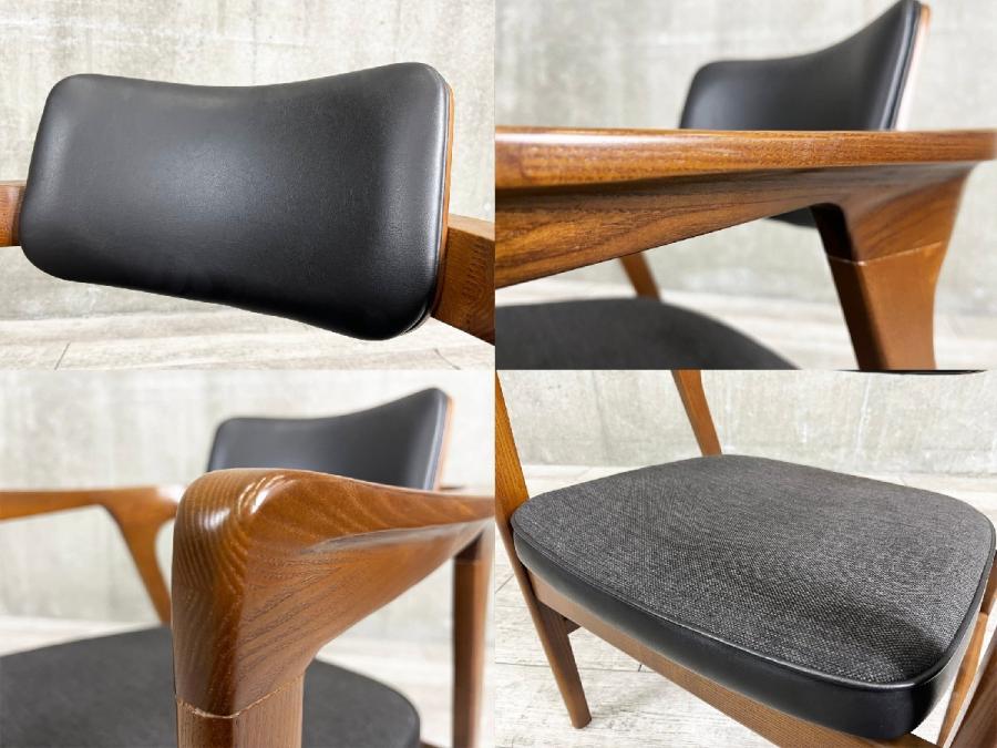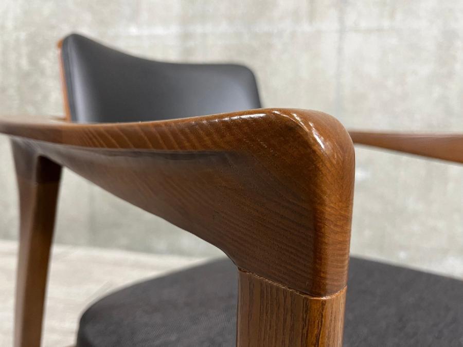 緩やかな曲線を描くアームや流れる脚部は、背面から見る機会の多いダイニングチェアを想定して、どの角度から見ても美しく見えるように設計されています。ミッドセンチュリーモダンの雰囲気を醸し出すデザインです。