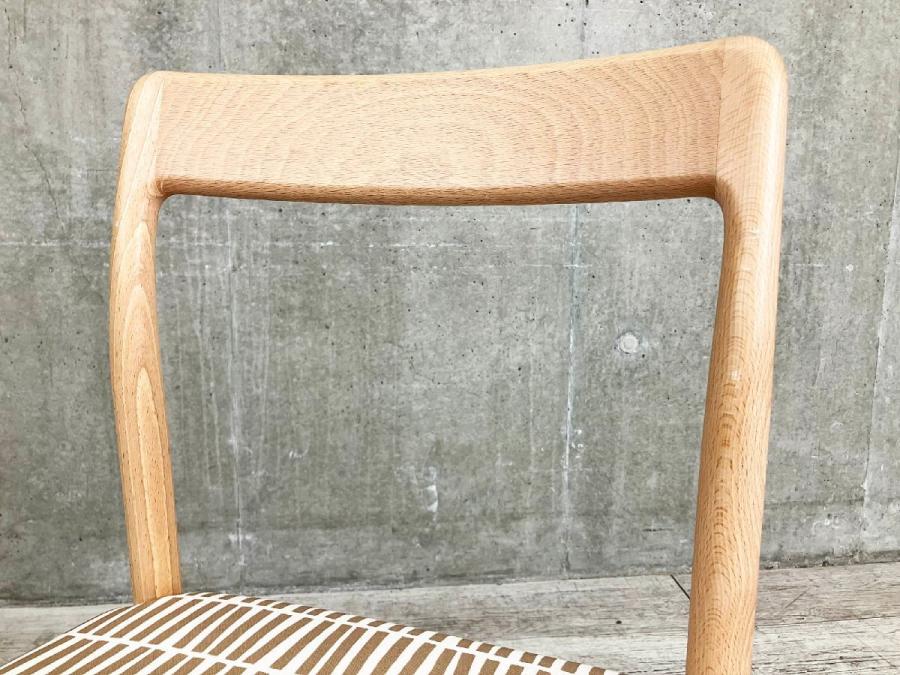 ブナ材の柔らかい風合いを生かした、シンプルで優しいデザインのチェアで、重量も3.7kgと軽量で、使い勝手がよいのが特徴です。